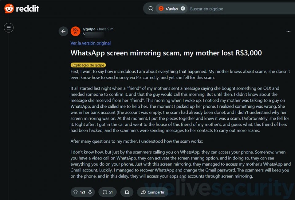 With access to incoming text messages and verification codes displayed during screen sharing, criminals can immediately take control of a user’s WhatsApp account. Once hijacked, the account becomes a launchpad for additional fraud: